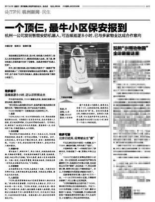 6月29日,浙江國自機器人技術有限公司發布新款“智能安防機器人”,目前已經和杭州多家物業達成合作意向。最快下半年,他就要出現在杭州某個高檔小區里了。